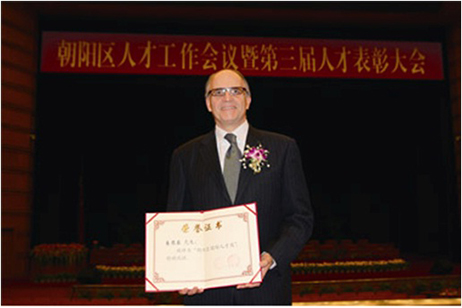 时任中意人寿总经理易思乐作为唯一一位保险业人士,荣获“朝阳区国际人才奖”。