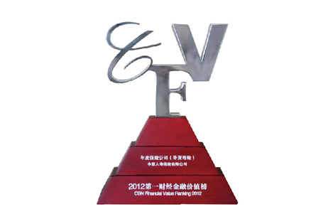 中意人寿在《第一财经日报》主办的"2012第一财经金融价值榜"颁奖典礼上荣获"年度保险公司(外资寿险)"称号。