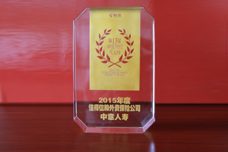 中意人寿荣获 “2013年21世纪亚洲金融年会-21世纪保险年会”颁发的“2013年度稳健经营奖”,这是第四次获奖,也是本届唯一获奖的合资保险公司。