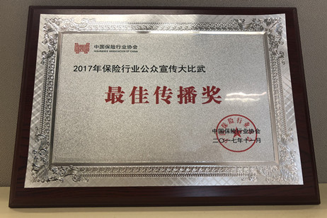 中意人寿在中保协“2017保险公众宣传大比武”评选活动中,荣获2017年度保险行业公众宣传大比武“最佳传播奖”。