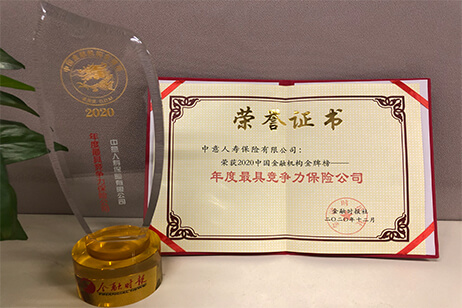 公司荣获2020中国金融机构金牌榜“年度最具竞争力保险公司”