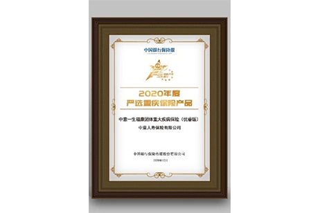 中意一生福康团体重大疾病保险(优睿版)获得中国银行保险报“2020年度严选重疾保险产品”