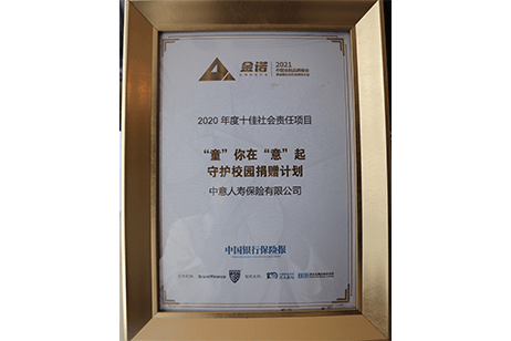 ”童“你在”意“起守护校园捐赠计划荣获2020年度十佳社会责任项目