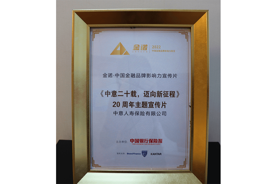 《中意二十载 迈向新征程》荣获2022“金诺·中国金融品牌影响力宣传片”
