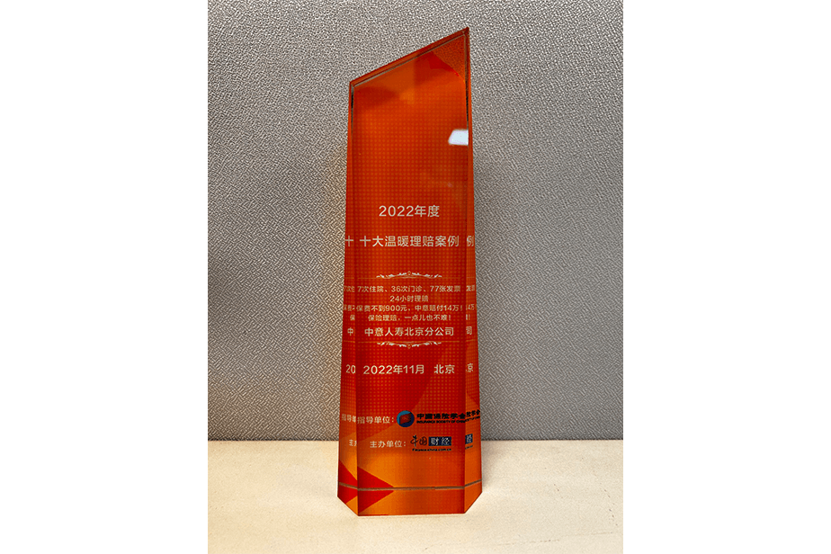 中意人寿荣获“2022年度十大温暖理赔案例”