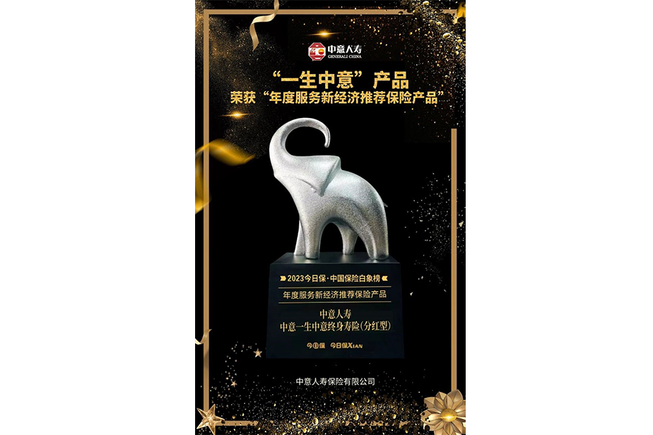 “中意一生中意终身寿险(分红型)”荣获“2023今日保·中国保险白象榜”“年度服务新经济推荐保险产品”奖