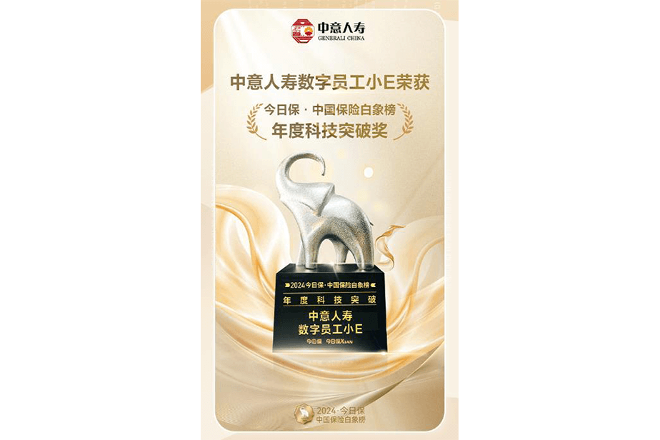 中意人寿数字员工小E荣获今日保·中国保险白象榜年度科技突破奖