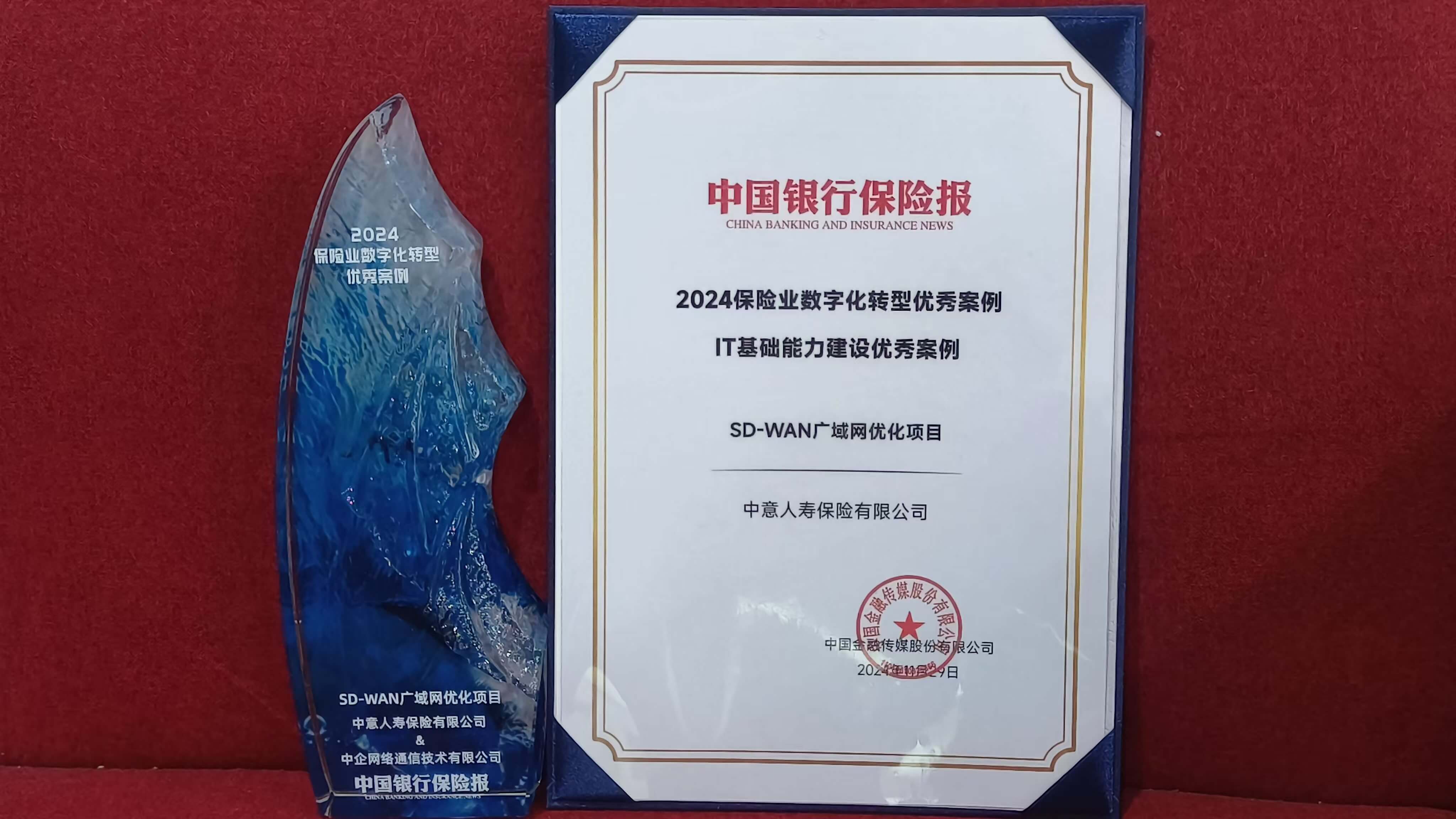 中意人寿SD-WAN广域网优化项目通过采用高品质的SD-WAN技术,为公司构建了高度可靠、安全、高效的网络基础设施,为公司的数字化转型提供了坚实的基础。SD-WAN技术的引入,使公司实现了全国范围内超过100个点的互联互通,不仅符合金融行业的安全规定,还满足了公司业务互联网化及未来可能的云化需求。SD-WAN项目分阶段实施,首先覆盖了总部与各分公司之间的连接,随后扩展至总部与近百家三级、四级机构的高效连接,展示了大规模部署的能力。通过这一技术的应用,公司成功替换了传统网络,在风险可控、成本可控、充分利用现有资源的条件下大幅度提升公司总部和各分支机构的网速和带宽,实现了降本增效。各分公司和总部之间带宽提升了50%以上,成本降低了三分之一,三四级机构提升带宽5倍左右。同时,新技术的应用还具备了安全高速上网、统一运维/管理、冗余保护及监控可视化等能力,切实优化了公司网络环境,夯实了信息基础设施建设。 此次SD-WAN项目及员工福利平台项目双双荣获“2024中国保险业数字化转型优秀案例”,不仅是行业对中意人寿在数字化转型和技术创新方面取得成绩的肯定,更是对公司未来发展前景的期许。公司将继续秉承“以客户为中心”的服务理念,不断加大科技投入,加速数字化布局,用科技助力公司业务发展,为客户提供更加优质、高效的保险服务。同时,中意人寿也将持续拥抱创新科技,为公司数字化转型和一流企业建设持续赋能,为保险行业的数字化转型提供更多有益借鉴。