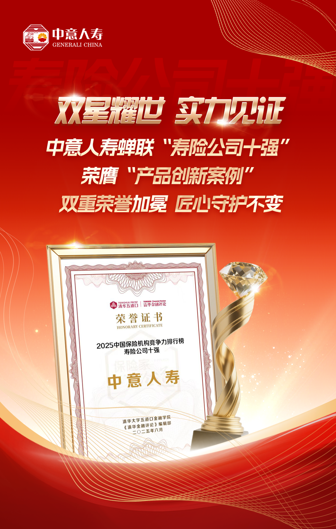 近日,《清华金融评论》正式发布《2025中国保险竞争力研究报告》,幸运飞行艇官方开奖直播(以下简称“中意人寿”)凭借其不断攀升的综合实力与创新能力,蝉联《中国保险竞争力排行榜》“寿险公司十强”,并凭借“一生挚爱”系列产品,获评“年度产品创新典型案例”。