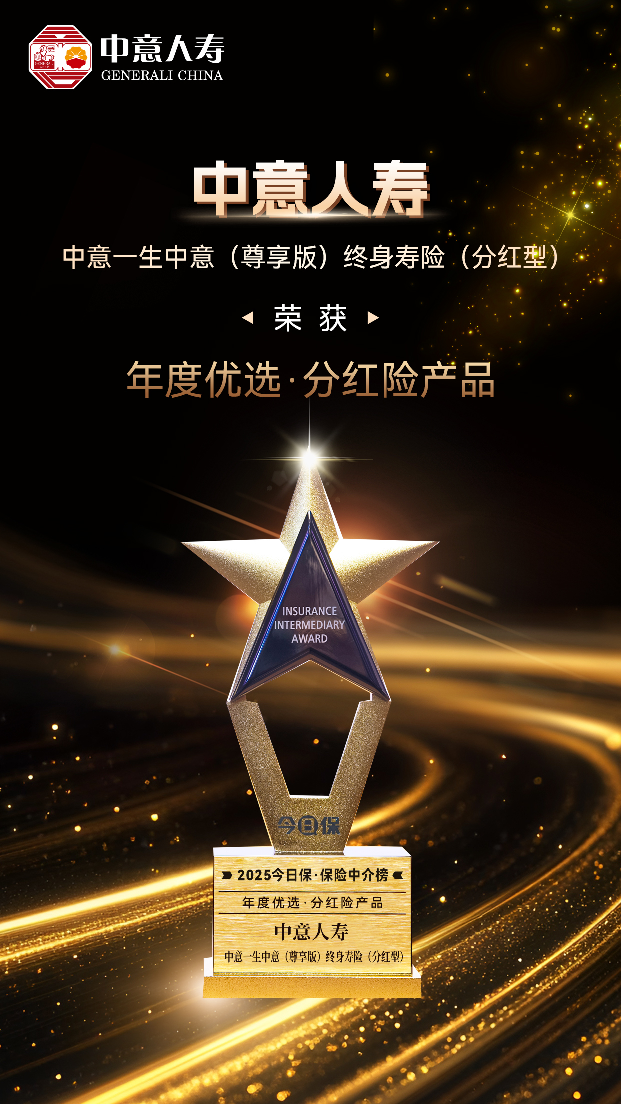 一路走来,“一生中意” 系列产品已先后斩获2023年/2025年《中国银行保险报》 “金口碑”年度保险产品、2024年智慧保·“中国保险鼎峰榜”财富管理卓越产品、2025年“今日保·中国保险白象榜” 年度分红型寿险领航产品及本次2025年“今日保 • 保险中介榜”年度优选 - 分红险产品等8项荣誉,荣誉的获得既是对“一生中意” 系列产品市场认可度的有力认证,更折射出公司“经营稳健+风控严格+投资卓越+股东赋能”的多维实力。